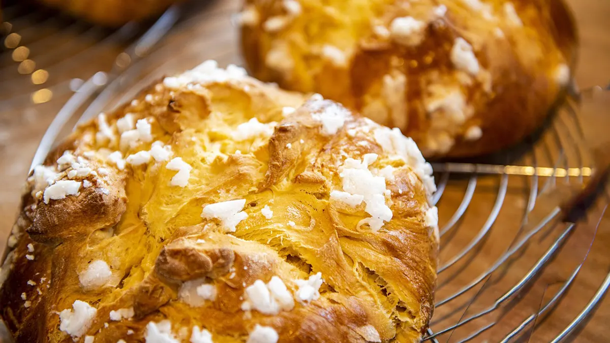 - Prepararea aluatului:1. Într-un bol mare,amestecați făina cu zahărul, zahărul vanilat, praful de copt șisarea.2. Adăugați untulrece tăiat cubulețe și frământați cu vârful degetelor pânăobțineți o textură nisipoasă.3. Încorporați ouăle,smântâna și coaja de lămâie.4. Frământați pânăobțineți un aluat omogen, dar nu exagerați (aluatul trebuie sărămână fraged).5. Formați o bilă, înveliți în folie alimentară și refrigerați pentru 30 minute.Prepararea umpluturii:1. Pasați brânza de vaci printr-o sită fină sau folosiți un blender pentru a obține o textură cremoasă.2. Separați ouăle. Păstrați 1 albuș pentru uns aluatul.3. Într-un bol mare, amestecați brânza cu zahărul până se topește zahărul.4. Adăugațigălbenușurile, unul câte unul, amestecând bine după fiecare.5. Incorporațismântâna, extractul de vanilie, coaja de portocală și sarea.6. Bateți albușurilespumă tare și încorporați-le ușor în compoziția de brânză.7. Adăugați grișulși stafidele (înmuiate în prealabil în apă călduță și bine scurse).Asamblarea și coacerea:1. Preîncălziți cuptorul la 180°C.2. Tapetați forma de tort cu hârtie de copt, inclusiv marginile.3. Luați 2/3 din aluat și întindeți-l într-o foaie rotundă cu diametrul puțin mai mare decât forma.4. Transferați cugrijă foaia de aluat în formă, acoperind și marginile laterale(aproximativ 5 cm înălțime).5. Înțepați bazaaluatului cu o furculiță.6. Turnați compozițiade brânză în formă.7. Din aluatul rămas,formați 2 suluri și așezați-le în formă de cruce pesteumplutură.8. Ungeți suprafațacu albușul rămas amestecat cu puțină apă.9. Coaceți la 180°Cpentru 15 minute, apoi reduceți temperatura la 160°C și continuațicoacerea pentru încă 35-45 minute.10. Pasca este gatacând umplutură este fermă și aluatul auriu.11. Lăsați să se răcească complet în formă, apoi refrigerați cel puțin 2 ore înainte de servire.VariantePască fără aluat: Preparați doar umplutura de brânză, adăugând 3linguri de făină pentru stabilitate.Pască cuciocolată: Adăugați 100 g de ciocolată neagră topită înumplutură.Pască cu fructeconfiate: Înlocuiți stafidele cu 100 g de fructe confiate.Pască cu brânză de oaie: Folosiți brânză dulce de oaie pentru un gust mai intens.Întrebări frecventeDe ce s-a crăpat pasca mea?Crăpăturile pot apărea din cauza temperaturii prea mari a cuptorului sau a schimbărilor bruște de temperatură. Asigurați-vă că urmați indicațiile de temperatură și evitați deschiderea frecventă a cuptorului.Cum știu când este gata pasca?Pasca este gata când marginile sunt aurii, iar centrul este setat dar încă ușor tremurător. La introducerea unei scobitori în umplutură, aceasta ar trebui să iasă curată sau cu urme foarte mici.Pot prepara pasca în avans?Da, pasca se poate pregăti cu 1-2 zile înainte de servire. De fapt, gustul se îmbunătățește după ce stă la frigider peste noapte.Cât timp se păstrează pasca?Pasca se păstrează bine la frigider până la 4-5 zile, într-un recipient acoperit pentru a preveni absorbția mirosurilor din frigider.